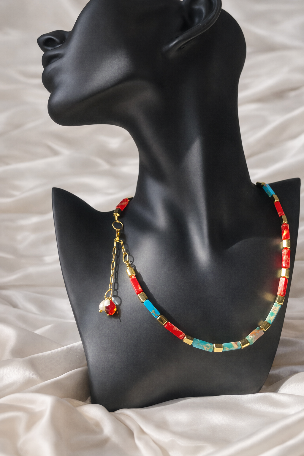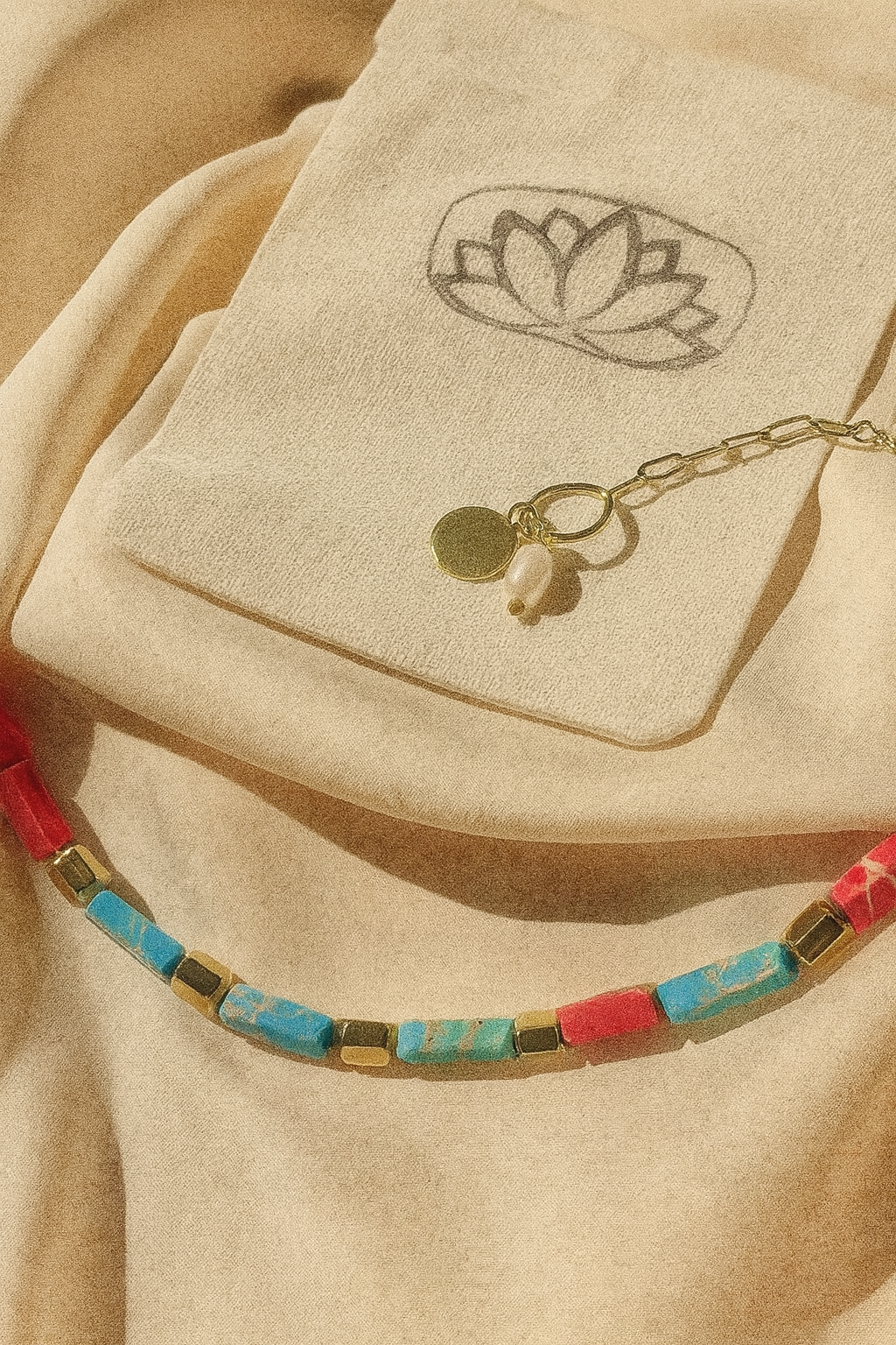 Doğal kültür incisinin zarafetiyle birleştiğinde bu tasarım, sade ama güçlü bir uyum sunar. Minimal şıklık, doğal taşın sıcaklığıyla dengelenir.